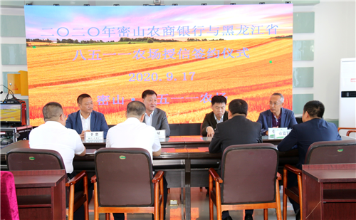 9月17日,密山农商银行与黑龙江省八五一一农场完成贷款授信签约。北大荒农垦集团有限公司牡丹江分公司党委委员、副总经理郑克斌,黑龙江省八五一一农场副场长亓力,鸡西农商银行行长王斌,密山农商银行董事长于忠等出席了签约仪式。作为战略合作的首场签约,开启了鸡西农商银行及所属三县市农商银与北大荒农垦集团有限公司牡丹江分公司所属各农场公司战略合作新征程及合作共赢、共同发展的新篇章!与此同时,在原有发放农场农户贷款的基础上,通过互利共赢,降低贷款利率,加大投放力度,进一步加大农业支持力度。