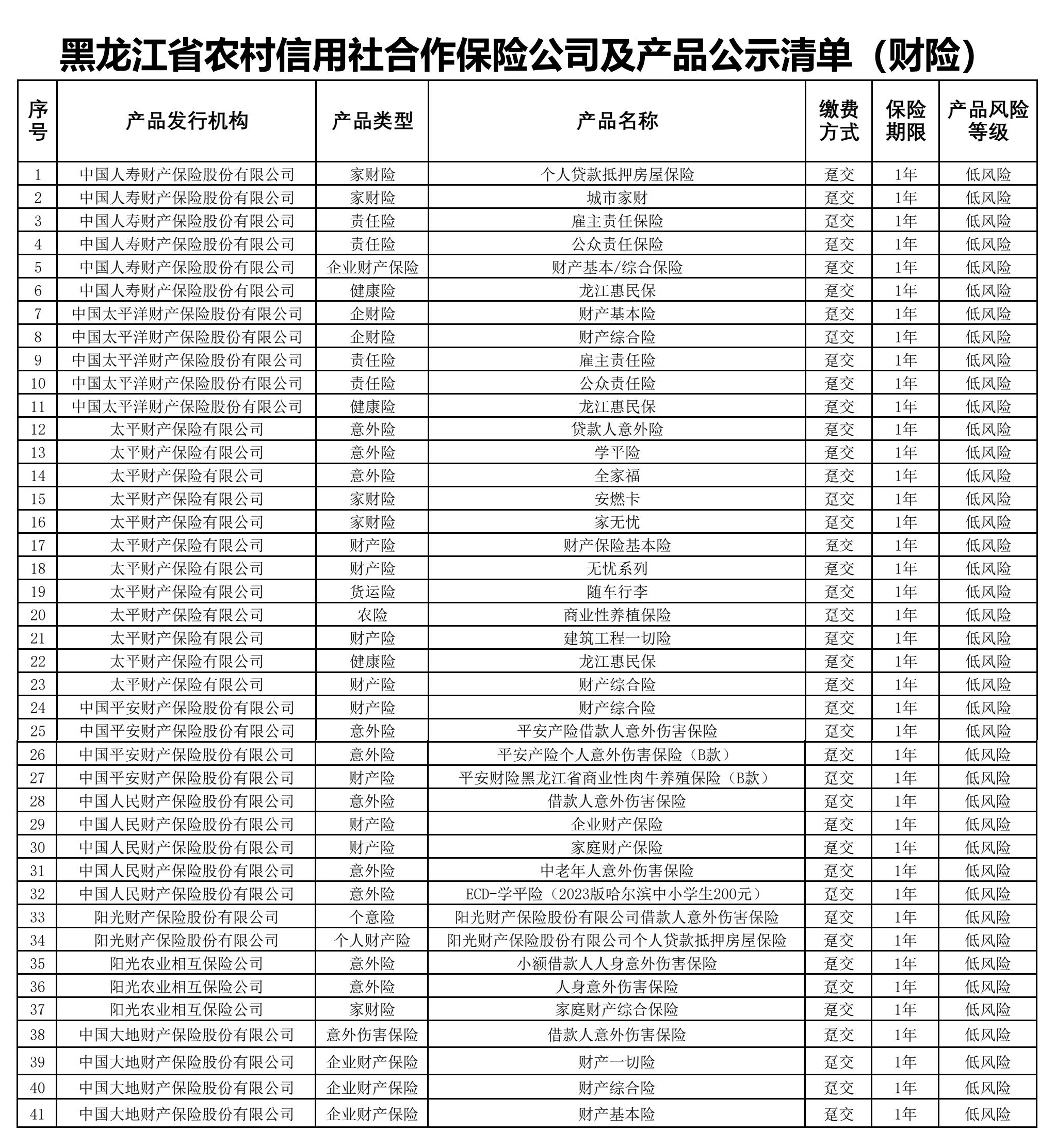 黑龙江省农村信用社代销保险产品公示清单-财险(202510)